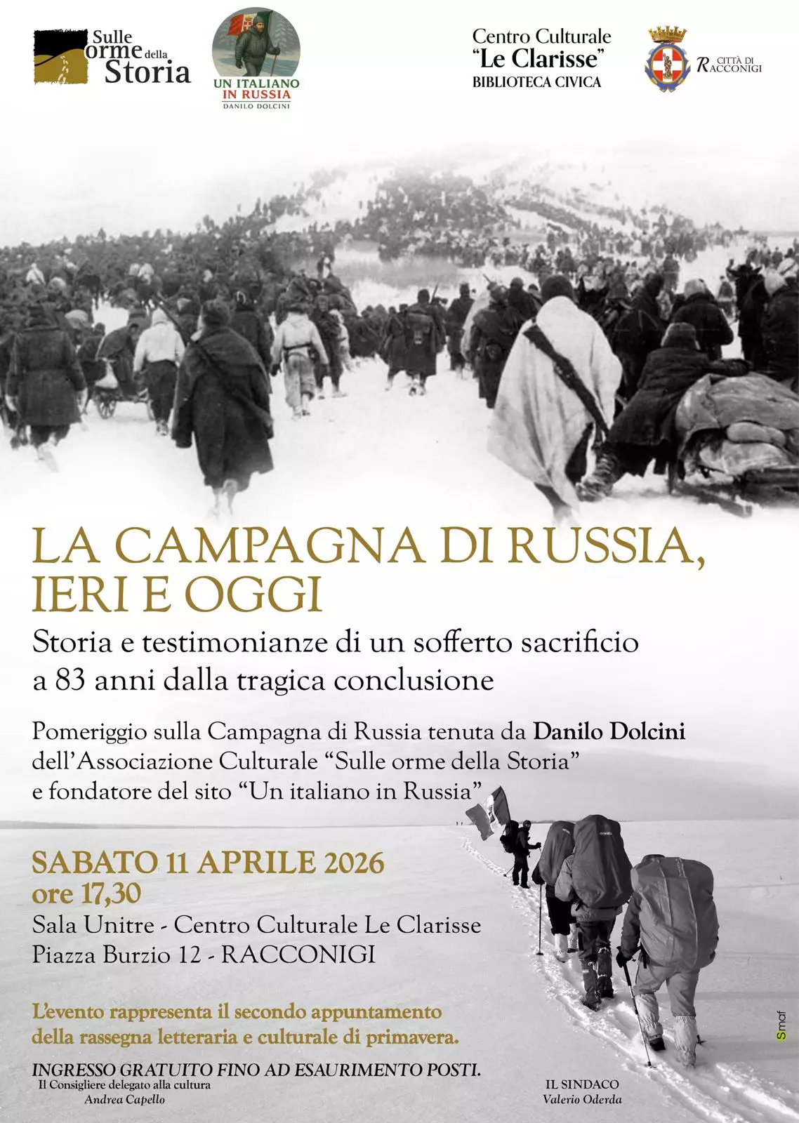 Sabato 11 aprile alle ore 17.30, presso la Sala Unitre del Centro Culturale Le Clarisse (Piazza Burzio 12), si terrà un pomeriggio di riflessione dal titolo “La campagna di Russia, ieri e oggi”, incentrato sulla ricostruzione storica e sulle testimonianze legate alla campagna di Russia.