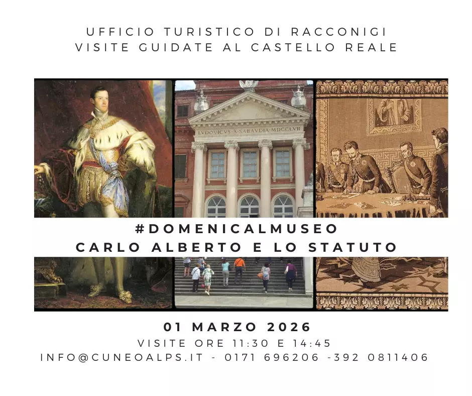 Descrizione Un fine settimana intenso attende coloro che vorranno con curiosità scoprire Racconigi. Sabato 28 febbraio torna il terzo appuntamento con i Community Tour legati al progetto "Residenze Reali – Territorio da Re". La proposta si compone di una passeggiata in città e di una visita al Castello di Racconigi. Il tema del racconto sarà "Illustri Sconosciuti e regali celebrità". 30 anni fa veniva pubblicato dalla Biblioteca di Racconigi il volume "Illustri sconosciuti" che doveva dare voce a quei personaggi che la storia aveva un po' messo in disparte. Durante la passeggiata, grazie ai nostri Ambassador, scopriremo alcuni cittadini che hanno dato e danno oggi lustro alla città pur tenendosi spesso lontani dai riflettori. Incontreremo il presidente dell'Associazione Cantoregi, i volontari dell'Associazione Sul Filo della Seta ci ricorderanno lo studioso Mario Monasterolo a 10 anni dalla morte, il prof. Gianfranco Capello che ci parlerà del poco noto Giovan Battista Imberti. Presso la Pinacoteca Levis Sismonda conosceremo la presidente dell'Associazione Presidiarte e la curatrice del museo, la dott.ssa Anna Cavallera. La visita si completerà tra le sale del Castello Reale dove scopriremo visitatori più o meno noti che vennero a Racconigi in visita alla famiglia Savoia. Domenica 1 marzo, in occasione della #domenicalmuseo, le guide dell'Ufficio Turistico coglieranno l'occasione per ricordare la ricorrenza della firma dello Statuto detto Albertino per approfondire la figura di Carlo Alberto di Savoia. Ultimo rampollo maschio del longevo casato sabaudo, fu inizialmente trattato con severità e talvolta con poco rispetto dai cugini regnanti, ma seppe poi dimostrarsi un degno sovrano. Le importanti tracce che ha lasciato al Castello di Racconigi raccontano di un uomo colto, raffinato e dallo spirito romantico nell'accezione ottocentesca. Lo Statuto che firmò il 4 marzo 1848 fu la carta costituzionale che venne applicata al Regno d'Italia e rimase in vigore fino all'avvento della Costituzione della Repubblica. Appuntamento a Racconigi sabato 28 alle 14:30 e domenica 1 marzo alle ore 11:30 e alle 14:45. Il calendario di "Racconigi si racconta" continua con il quarto Community Tour il 14 marzo dal titolo "Ospitali, poveri e bambini" e il 22 marzo con la visita "Dedicato a Maria Teresa d'Asburgo". Per informazioni è possibile consultare la pagina del Consorzio Conitours www.cuneoalps.it o telefonare al numero 0171 696206.
